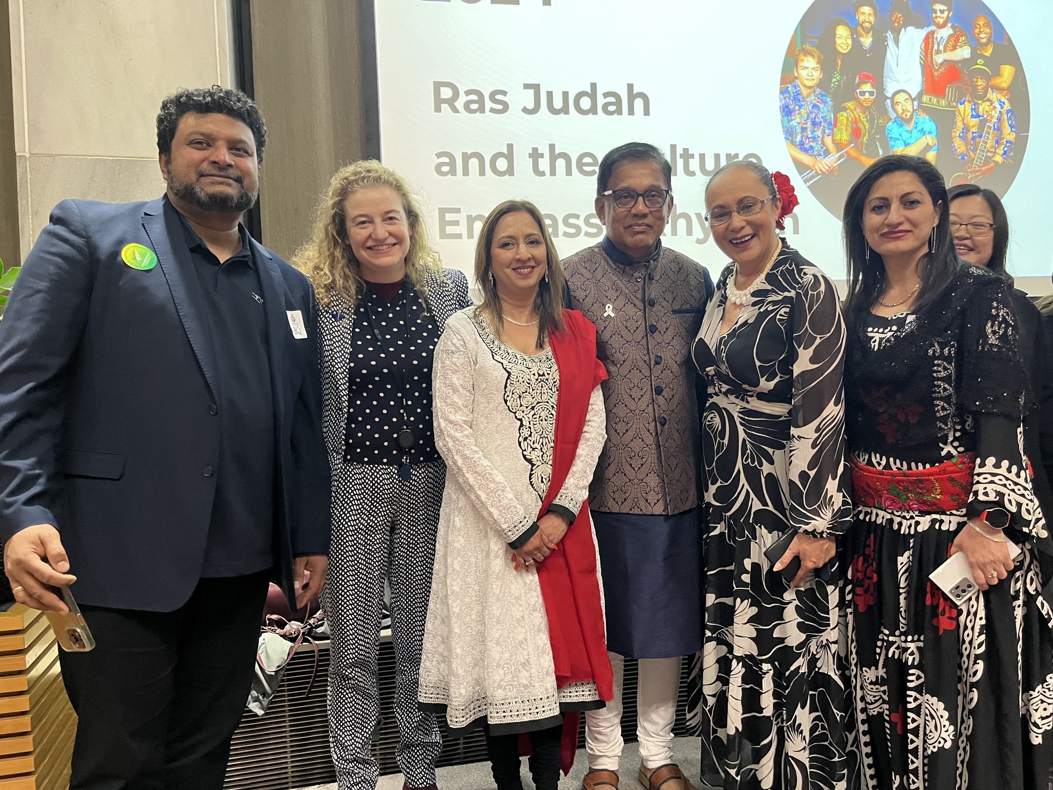 Premila (centre, red and white) with attendees at Parliament for Te Tiriti-based Multicultural Day, representing Aotearoa’s diverse communities